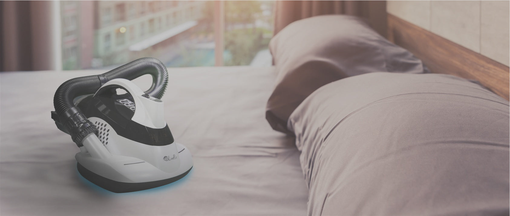 The handheld allergen vacuum uses UV technology to neutralize dust mites and allergens living in bedding, carpet, furniture, clothing and most soft surfaces in your home.